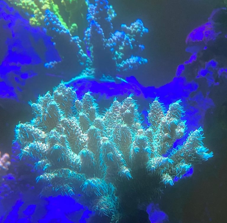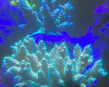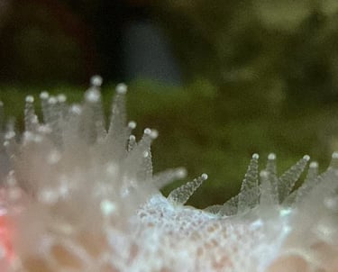 Photo taken from one of our SPS dominant tank, showing coral polyps extension during daytime, after dosing our Nannochloropsis.