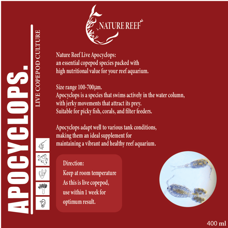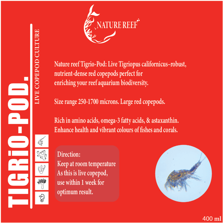 At Nature Reef, we believe that a thriving aquarium should be achieved through natural balance. Our live pods not only provide essential nutrition to marine life but also play a key role in the aquarium's ecosystem, by cleaning up detritus, controlling diatom and algae, as well as enriching biodiversity—creating a self-sustaining, healthier environment for your aquarium.